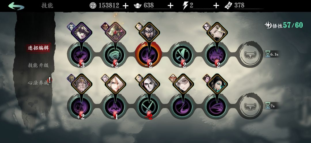 上图是我玩了三天对无锋技能机制的个人理解,目前关于技能链和心法搭配,无锋因为技能机制多以防御增伤为主,所以心法上我搭配了防御心法锤锤锤,铁诞,永铭之志作为主心法,月堡女王为副心法,其他主心法根据技能机制相应搭配,这套心法搭配只有永铭之志是单个心法 没有羁绊技能,其余都有。 技能,心法绝技搭配: 括号内为心法名,心法搭配前提是下面我说的这些心法绝技要开,根据杀意技和奥义生成技搭配。 搭配和心法减CD