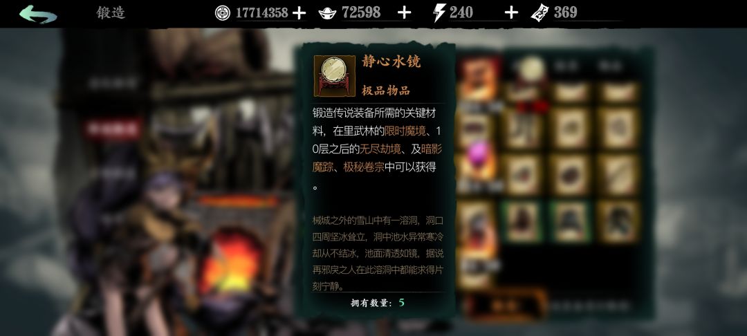最近群里很多回归或萌新玩家都在问怎么弄,我看具体回答甚少,所以罗列一下 1.里武林 按材料上的获取渠道,去里武林的限时镜像追忆打,没啥难度,湮灭难度才有掉落!打不过拉助战 这里有个细节,就是每个房间都进,箱子桶子别漏,打完就剩一个boss图的时候,点右上角有个包裹图标,里面会显示掉落的物品,如果出了镜子就通关,如果没出,直接右上角丨丨离开关卡,这也是所说的s/l大法。 2.无尽劫境 正常打,出不出