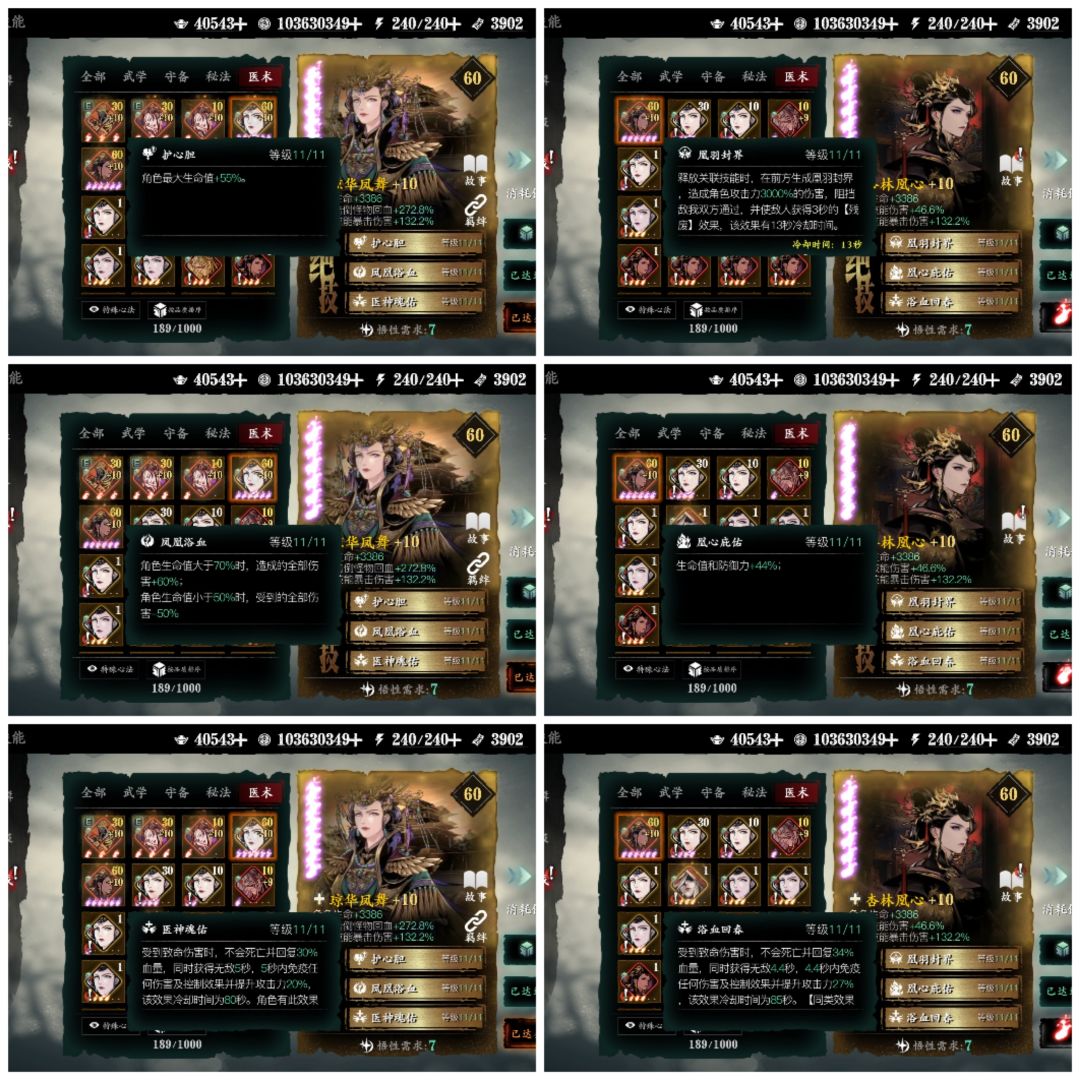 本次更新出了全新的尊品心法,红龙妈,大家对于这张心法很有争议,这个帖子我会给没抽的玩家做一下各阶段的数据对比以及抽取建议。 首先,是紫六阶段的对比,都是满绝技。 其次,是红三满绝技新龙妈与紫六老龙妈的对比。 可以看到,紫六新龙妈在生命值加成上不如老龙妈,关键技能复活,多了少量的攻击及回血,但是增加了CD,减少了无敌和免控时长。而红三新龙妈,生命值加成也是不如老龙妈的,复活技能在保证无敌机制不出现差
