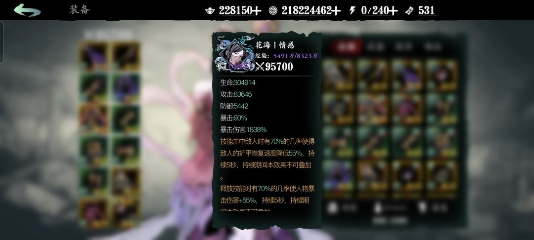 蚀灭20,装备传武,戒指真谛和灭戒,勠力同心项链。 目前龙二失效,99项链失效,青鸾七巧负面独立被削,按照这个逻辑,只用堆爆伤全伤攻击,带羽衣勠力同心,吃剑意龙九全伤加成以及上链爆伤,把这个畸形链子分享出来。 潜能套的刀光,多触发一次刀光可以多打80e,所以选择带7个技能,保证最后暗龙剑带出刀光。 项链刻印带血咒,每一次大概是6kw伤害,比混沌好用。