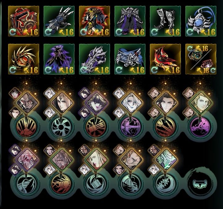 好多天没上线了,今天周一刷了一波日常,兴趣已经油尽灯枯了。给大家留几条链子,我的练度不是太高,8张稀有,我记得背包还有很多张狂龙,加上金豆子应该是够开红三的,实在是懒得做了。这个游戏其实一直在更新,但质量和水准实在难评,我不玩论剑,但从这几天论坛的帖子来看,应该也是不入流的东西。 ● 第一套是我用了好久的打桩链,这个链子打桩伤害绝对够高,我194的蚀灭,8张稀有红三能打25万,而且这个链子会把拾灭