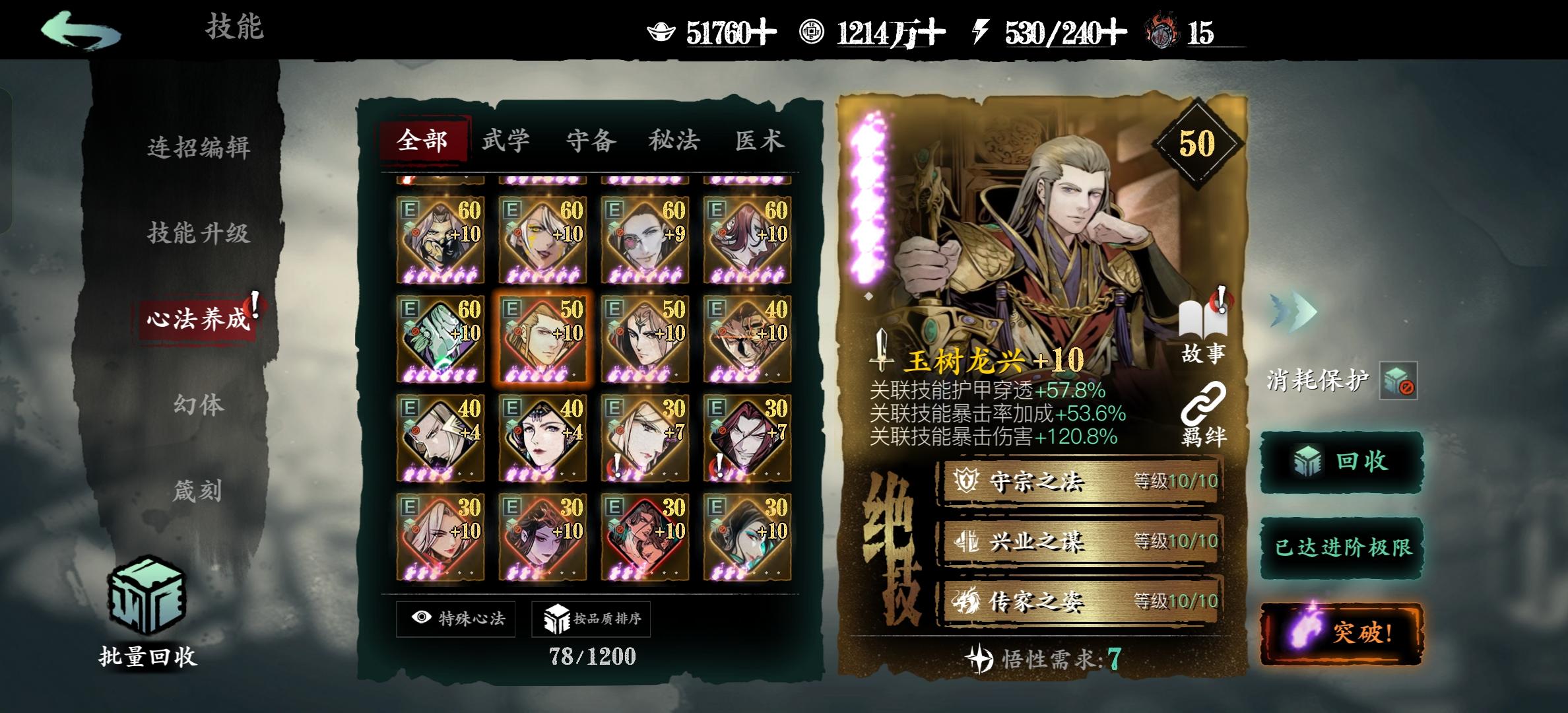 一、心法获取蚀灭是游戏目前唯一不会被稀释的增伤,下面说说如何提升蚀灭等级。1.升级铭刻图鉴等级把红卡和5张稀有橙卡升级到紫6开启铭刻图鉴,提升图鉴等级获得蚀灭。剩下4张普通橙卡和6张紫卡完成【入局试炼】会送的,这10个图鉴相当于白送了。之后消耗一张满级同名心法,可以让该心法的图鉴等级升1级,不推荐资源少的新手这么干。另一种方法是通过某些活动获取50个碎念升1级。2.部分心法铸魂满级把