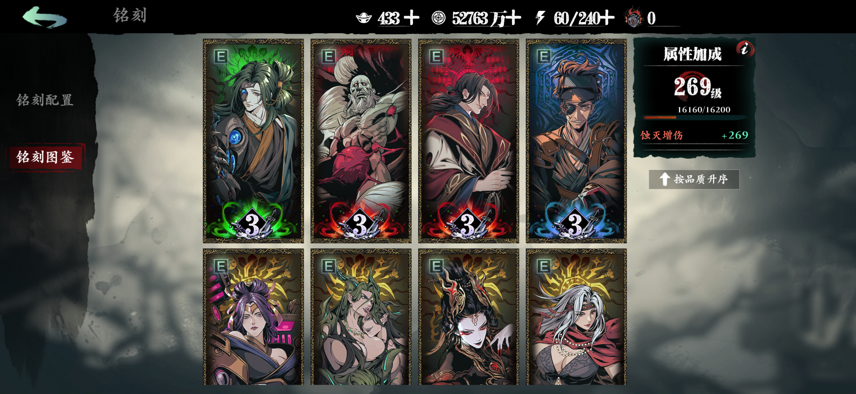 一、心法获取蚀灭是游戏目前唯一不会被稀释的增伤,下面说说如何提升蚀灭等级。1.升级铭刻图鉴等级把红卡和5张稀有橙卡升级到紫6开启铭刻图鉴,提升图鉴等级获得蚀灭。剩下4张普通橙卡和6张紫卡完成【入局试炼】会送的,这10个图鉴相当于白送了。之后消耗一张满级同名心法,可以让该心法的图鉴等级升1级,不推荐资源少的新手这么干。另一种方法是通过某些活动获取50个碎念升1级。2.部分心法铸魂满级把