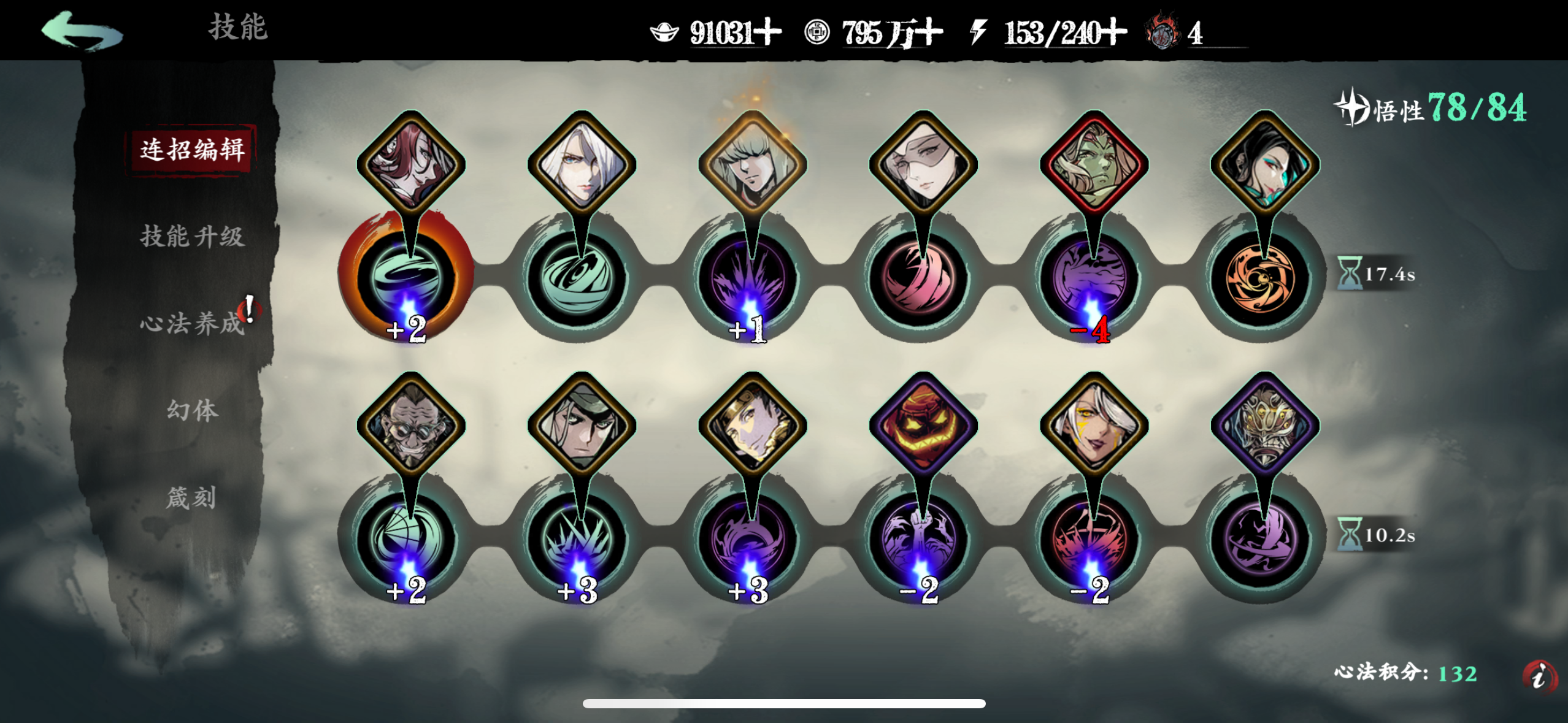 左殇新手,目前的心法质量是这样,想请教一下大佬们,零氪的话走单龙还是双龙呢?技能链子如何改一下呢?求求