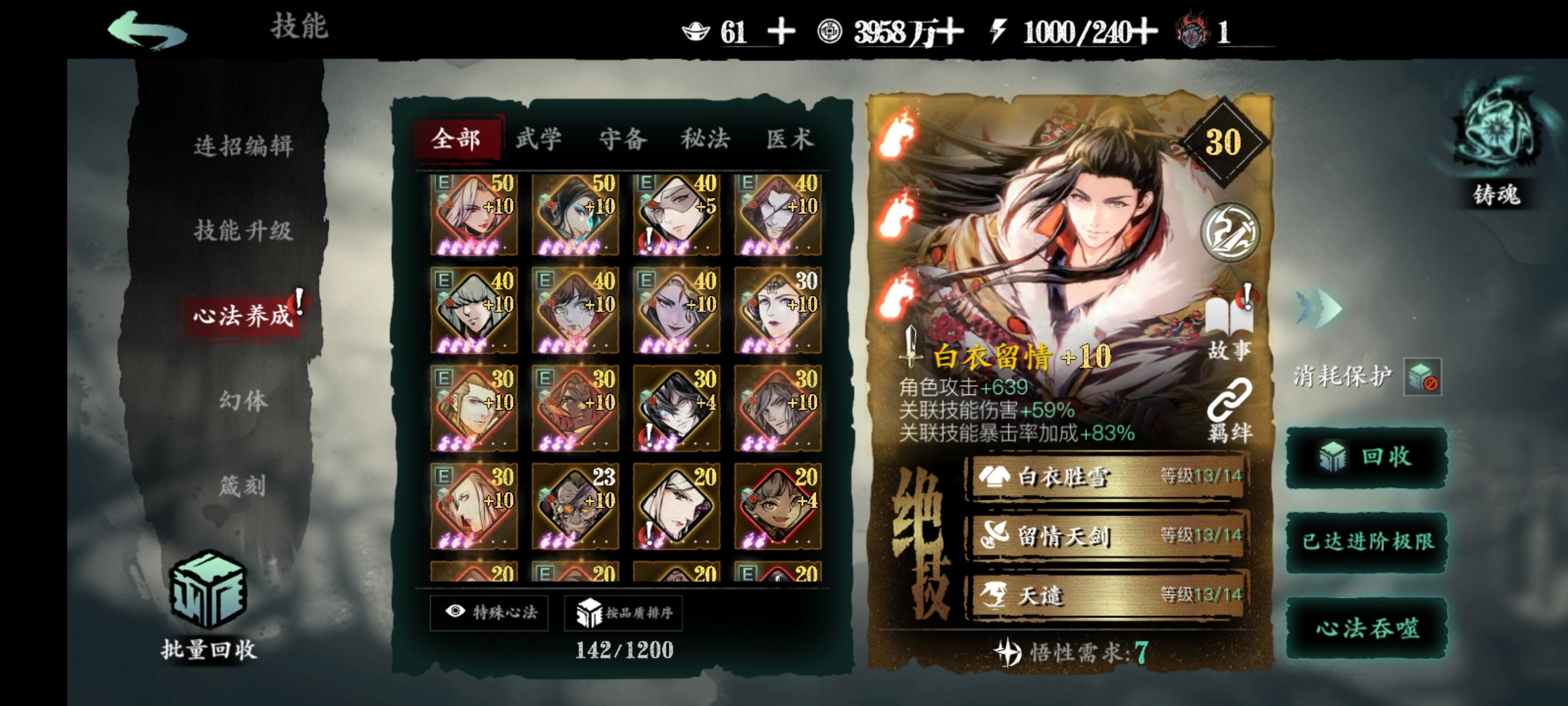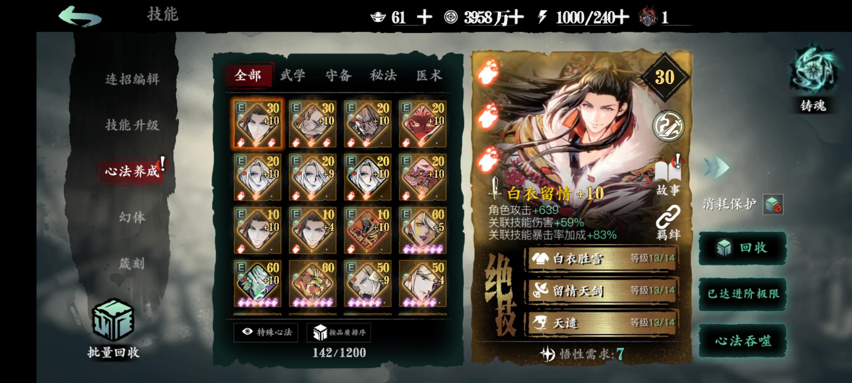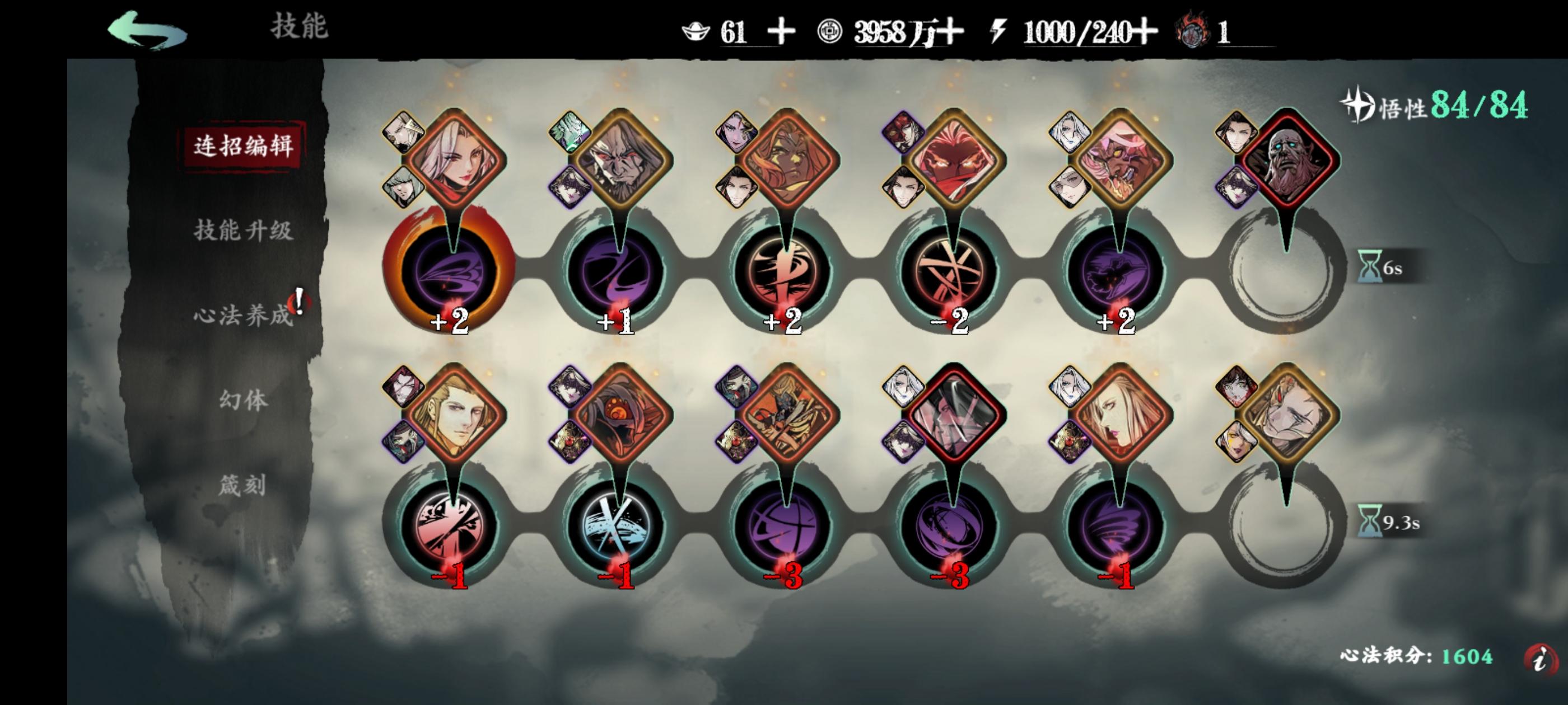 左殇新手,目前的心法质量是这样,想请教一下大佬们,零氪的话走单龙还是双龙呢?技能链子如何改一下呢?求求