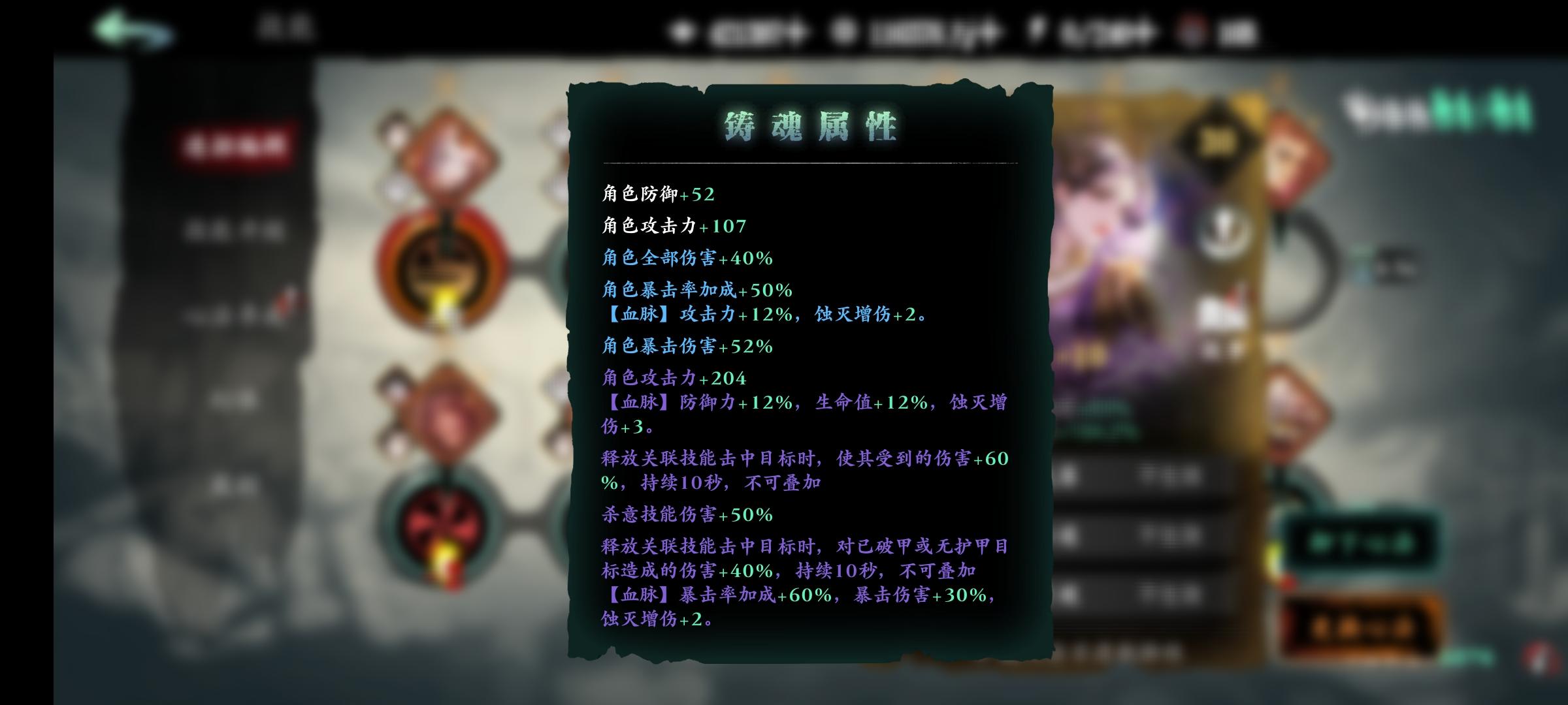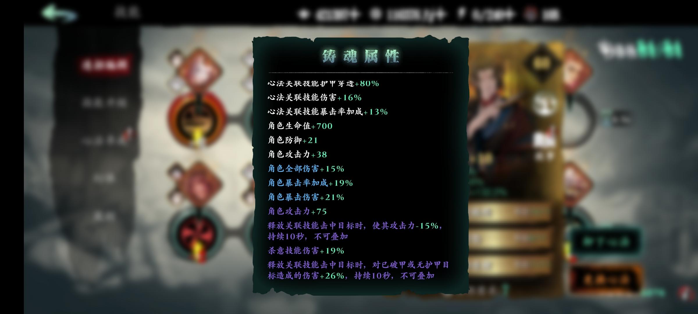 入局者敬启,本周将开放心法「黑林邪王」的铸魂与铭刻,下面为大家带来铸魂属性与铭刻属性的预览:铸魂预览心法「黑林邪王」铸魂带来的蚀灭增伤共计9点蚀灭增伤。满铸魂预览:千棺木刺:释放关联技能时召唤千棺木刺,造成角色攻击力X%的伤害,并使敌人定身2秒。破妄真印:造成的真实伤害+X%,普攻除外。饲魔养身:千棺木刺命中首领敌人时,使自身防御力+X%并获得该首领的X%攻击力,使该首领的攻击力和防