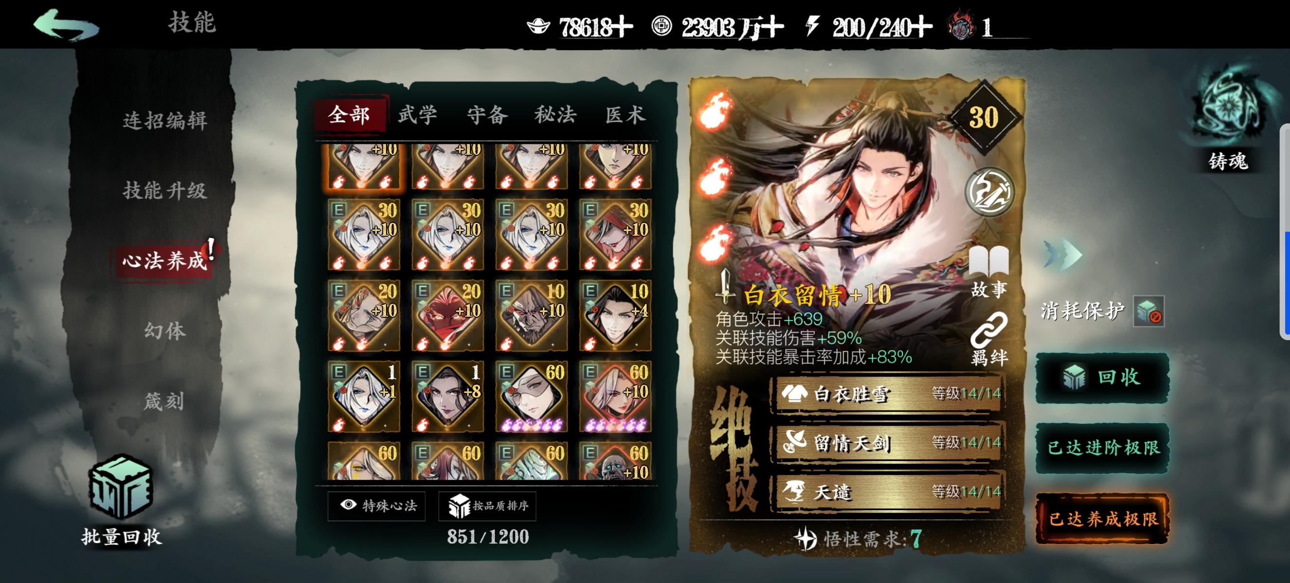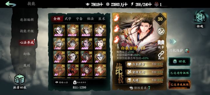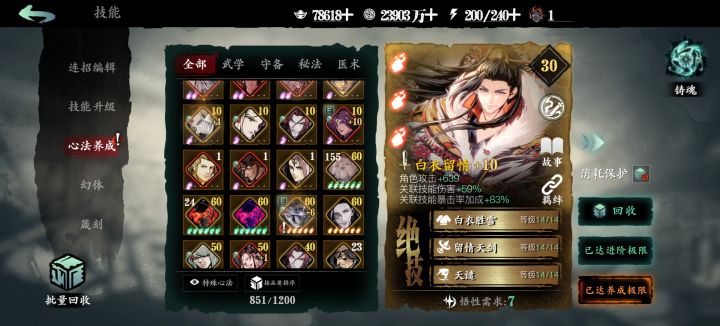 左殇新手,目前的心法质量是这样,想请教一下大佬们,零氪的话走单龙还是双龙呢?技能链子如何改一下呢?求求