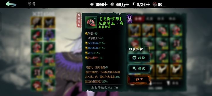 入局者敬启,本周将开放心法「黑林邪王」的铸魂与铭刻,下面为大家带来铸魂属性与铭刻属性的预览:铸魂预览心法「黑林邪王」铸魂带来的蚀灭增伤共计9点蚀灭增伤。满铸魂预览:千棺木刺:释放关联技能时召唤千棺木刺,造成角色攻击力X%的伤害,并使敌人定身2秒。破妄真印:造成的真实伤害+X%,普攻除外。饲魔养身:千棺木刺命中首领敌人时,使自身防御力+X%并获得该首领的X%攻击力,使该首领的攻击力和防