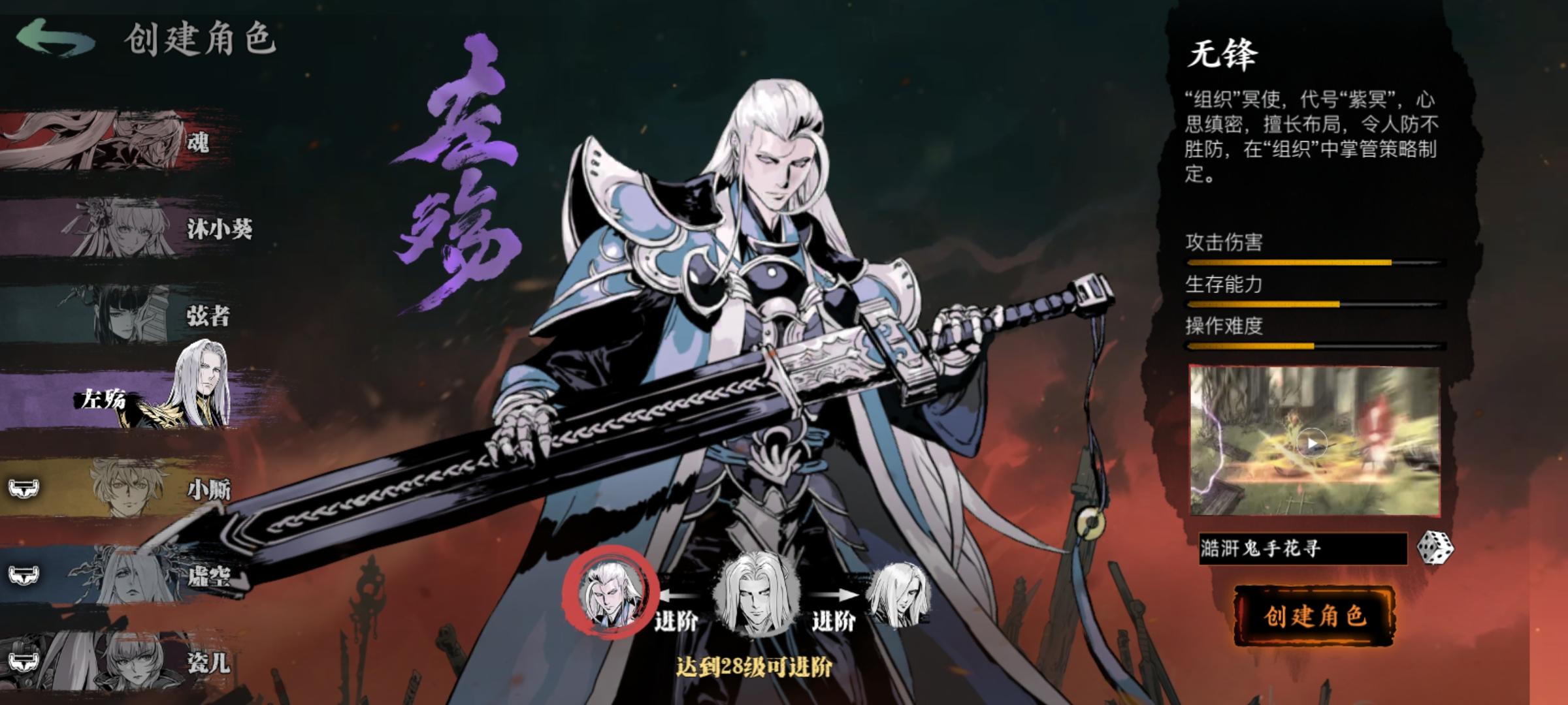 我记得以前玩的时候搜攻略大部分都推荐左殇无锋,现在入坑的话也是推荐玩这个角色吗