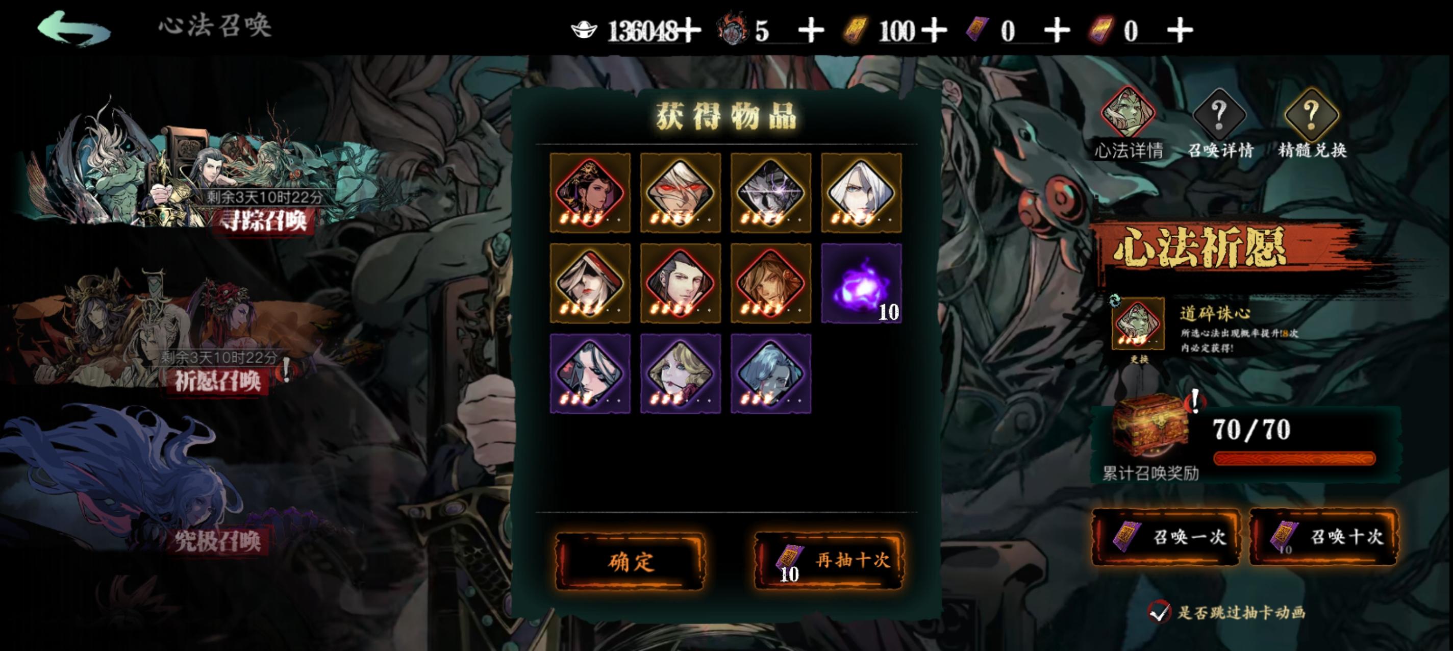 这个游戏想要伤害高,心法是核心,所以这篇是来讲解心法怎样养成的。首先这个游戏分为五种心法“武学、守备、秘法、医术、特殊心法”目前的话主要是围绕武学心法来提升的。(“““精简”””)推荐咱们抽取以下卡片红卡:“天穹飞翎1 “玉树龙兴”2,“道碎诛心”2, +其他红卡(其中萌新不打算充很多钱的优先囤卡抽天穹飞翎,其他红卡紫二即可)橙卡:“狂龙有悔”1,“魔堡故人”2,“黑暗无情”2,“万魔之魂