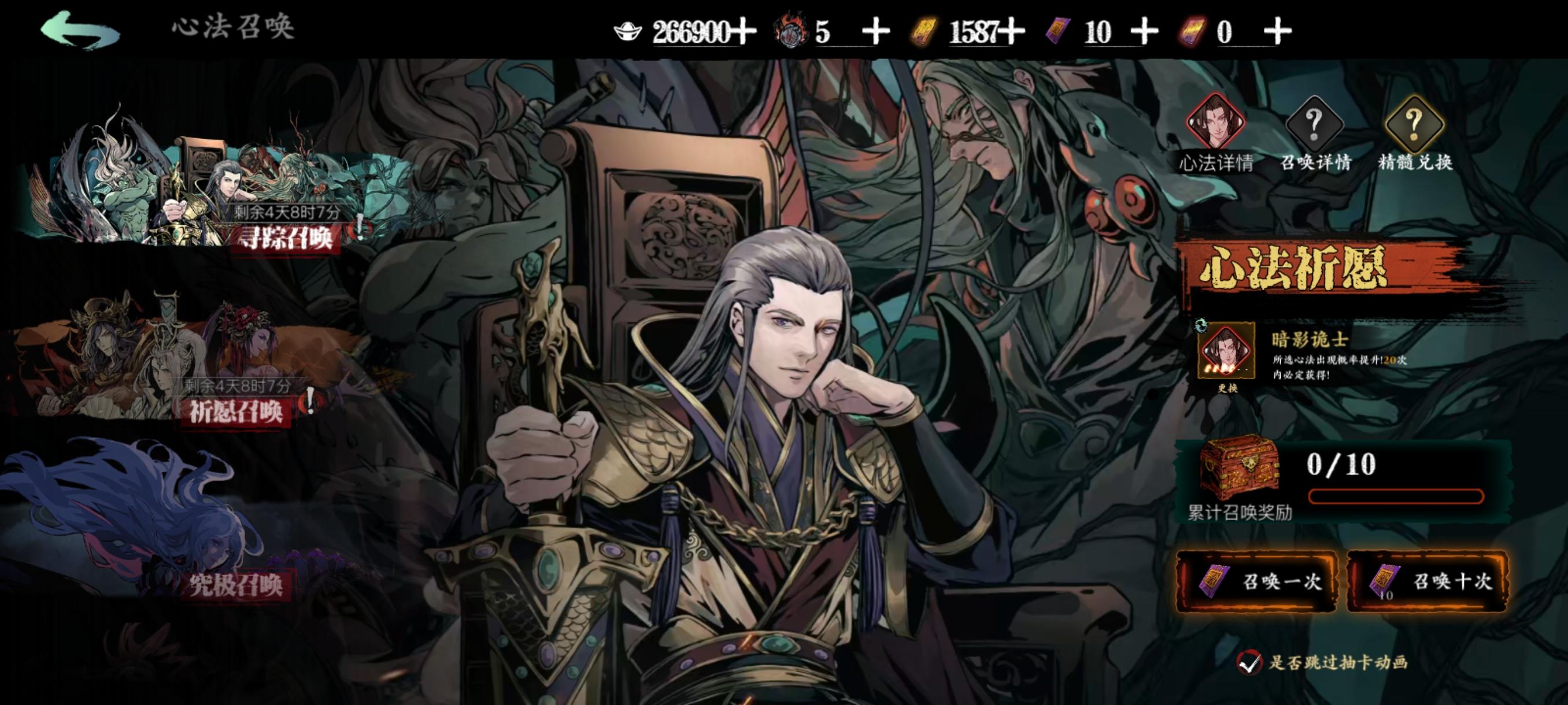 此攻略个人理解,面向新玩家这个游戏的核心玩法是心法,新玩家pvp暂时不涉及,每天完成5把论剑任务即可,所以主要介绍pve玩法的主卡①独一档:天穹飞翎,节日限定心法,目前来看只会在国庆和春节期间推出,只能紫抽,至少要紫六pve才有大作用,而且虽然是独一档,但是其pve作用可以用万魔代替,所以不推荐新玩家抽此卡,待有一定练度再补此卡即可②一档:红色超稀有心法,目前共八张,大部分只能用紫抽抽取(佳