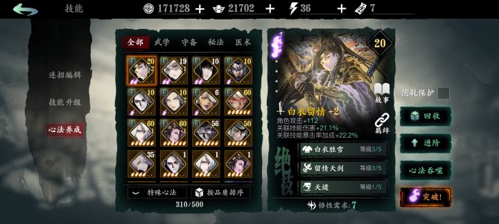 现在论坛基本上都是一个声音——没钱玩不下去,本来想直接回击,后来想想算了就立一个平民帖指点一下平民玩家先说结论——平民(包括零氪)能玩而且能有不错的体验,前提是不走弯路,不浪费资源说一下楼主自己,内测氪了一华服,公测氪了30战令,现在所有图都开了,基本上都能秒秒秒(不过因为现在走剑神套,急需开放魔套来提升,所以无尽10现在还没戏)这是心法的养成情况ps:芳华280抽了,活动结束前可以紫1,