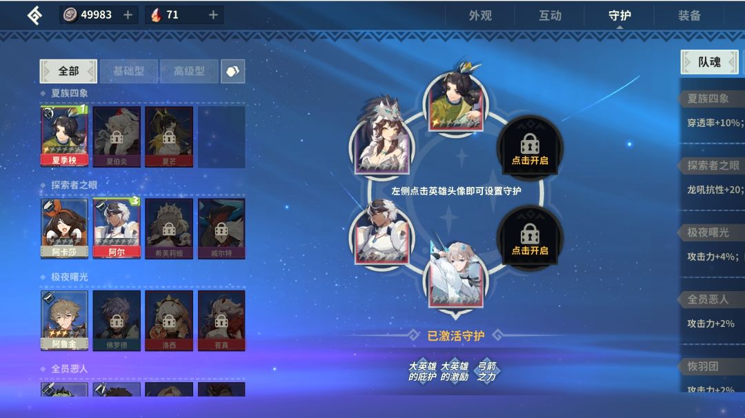 守护,只有一个保底阿尔,所以也没什么加成,看我体力、生命和攻击就知道了。