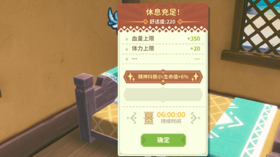 先上效果图! 血量上限+350 体力上限+20 特殊效果,生命值+%6 持续6小时, 然后我们按材料一步步来, 橡木板,可以到家园管家(刚进去左边的小胖子)购买橡木,进行加工就可, 精布,是用粗布和颜料加工来的,绒毛加工成粗布,无机矿加工成颜料,材料都可以直接购买, (颜料的话多加工些) 上面的都很简单,接下来是毛皮,毛皮可以通过宰杀某些动物获得,而我们最快获得的方法就是牧场2级开启购买的狐狸,宰
