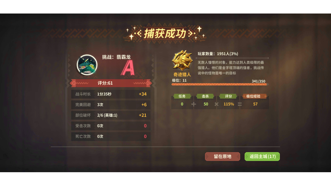 未获得奖励显示狩猎完成