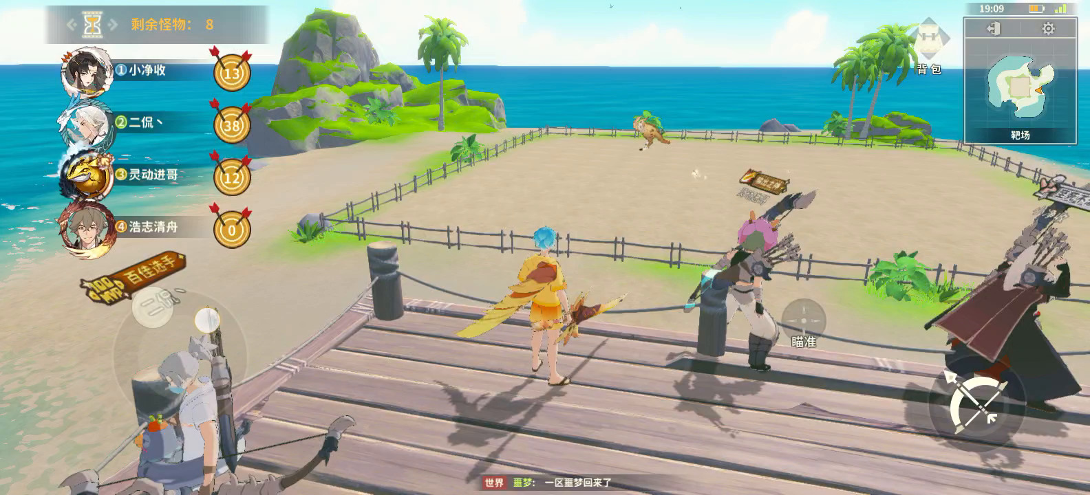 射箭比赛还是下了吧 上了之后还是有问题 满蓄力射不中 网络延迟? 只能射到前半场的怪 后半场摸都摸不到。 昨天射箭比赛准星和弹道瞄准都不符合 歪的离谱。