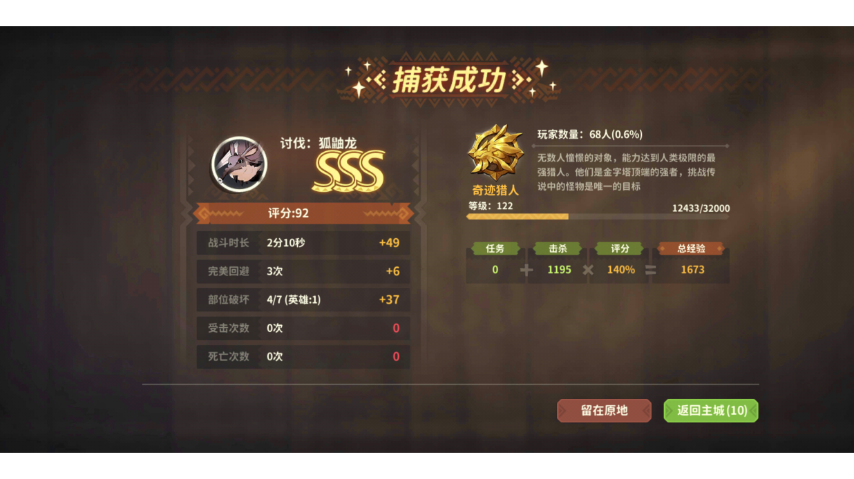 最近肝猎魂觉醒,没什么时间玩狩猎时刻,停在无双猎人好几天了。