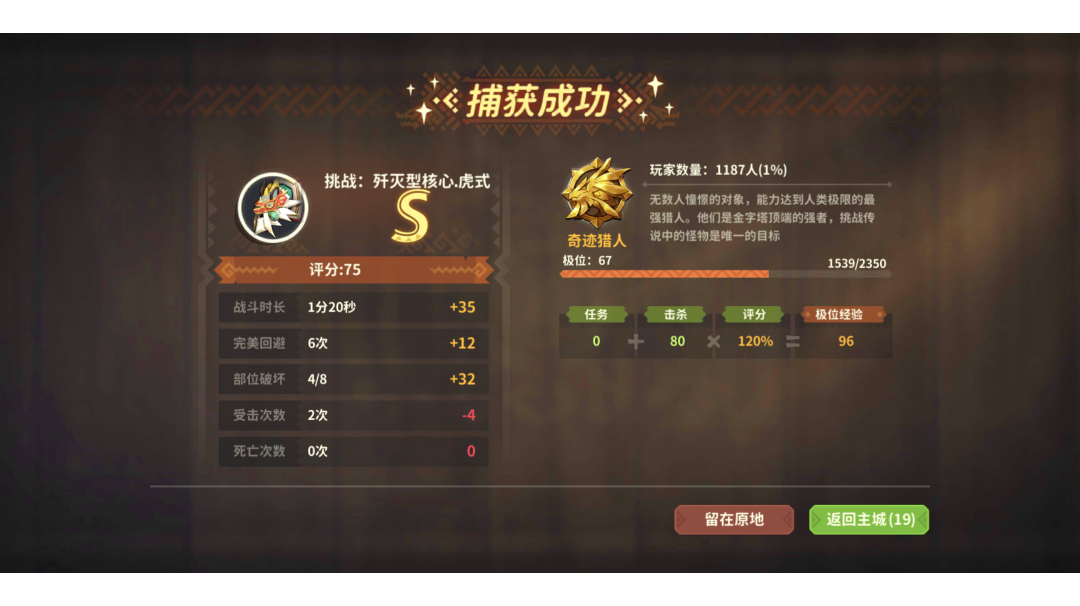 极位二的boss感觉好卡就没录屏。凹了几次行动运把安伯特体力凹虚了。全程修脚,大剑好歹还有个日轮能稍微破中位,或者倒地拜年输出。 两三次闪光加先闪光接麻痹图腾,三次大回复和福运秘药,强效也吃了几次。总的来说,逆天运气行动运确实可以打三分台,两分台想想就行了。 哦对了,料理吃的是豪华套餐,烧了两次(最后一次是快打死才烧,差评) 饰品因为全身打的几乎都是元素,不好控。用了项链手环混红。