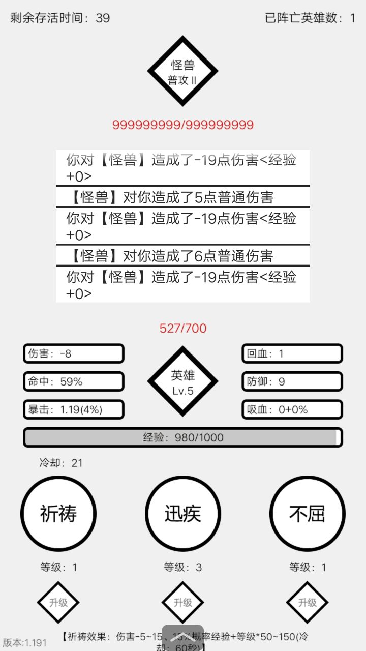 刚进游戏一脸懵,点哪都没用,点怪兽那个菱形也不加经验,点英雄也不减冷却时间?然后我以为第一条命就要干看着?结果被怪兽打死了?而且我发现攻略里的游戏规则里面都告诉点怪兽加经验什么的,我的规则里没告诉我?什么情况,玩不懂啊