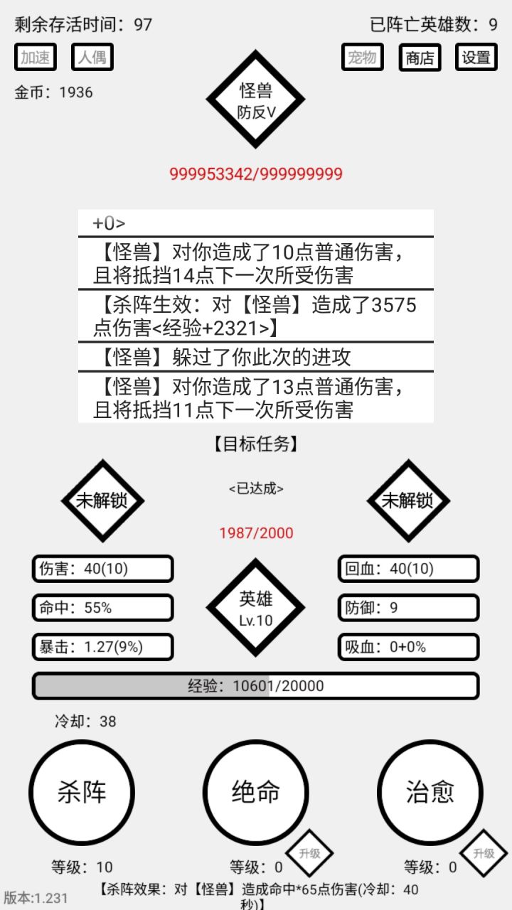 刚进游戏一脸懵,点哪都没用,点怪兽那个菱形也不加经验,点英雄也不减冷却时间?然后我以为第一条命就要干看着?结果被怪兽打死了?而且我发现攻略里的游戏规则里面都告诉点怪兽加经验什么的,我的规则里没告诉我?什么情况,玩不懂啊
