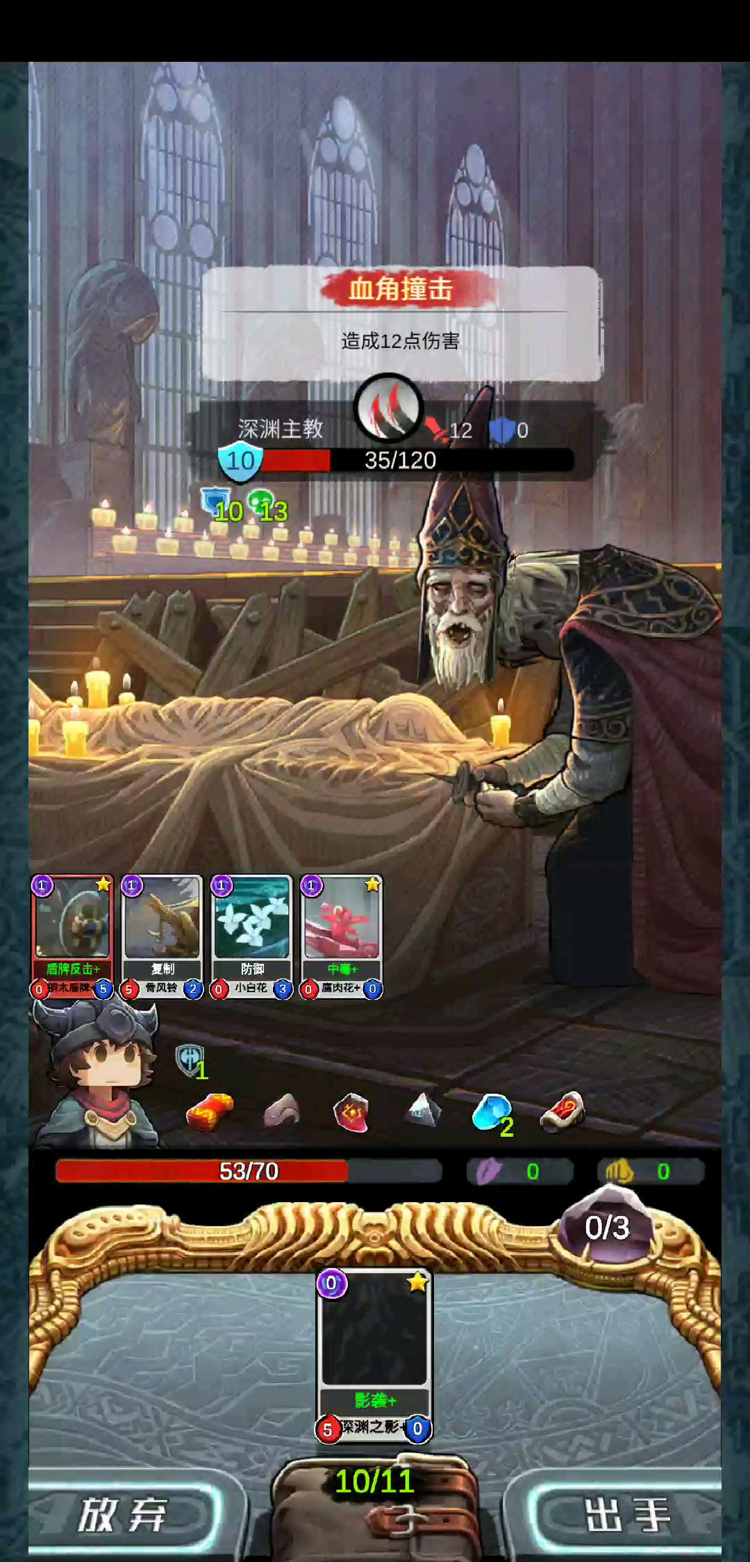勤奋宝石打那个半血之前伤害减半的怪有个bug 伤害会遭到削弱 我十八伤害的迷雾触手两次攻击每次攻击都是3其他伤害卡也是