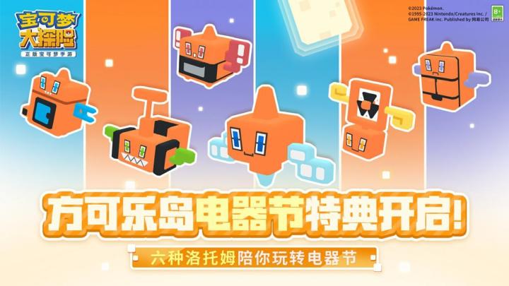 特典来袭,由网易、The Pokémon Company、GAME FREAK inc.携手开发的《宝可梦大探险》即将推出新的内容!活动料理上新、人气料理返场、电器节大挑战等一系列活动即将开启,同时友好商店的商品也将迎来一波更新!【多种形态!六种洛托姆同台特典】洛托姆的本体带有电属性和幽灵属性,潜入不同的家电后会变换成不同的形态,技能和属性也会发生改变。在和洛托姆玩耍时,还请各位探险家们小