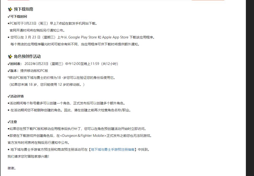 DNF手游韩服3月23日预下载、角色预创活动开启!