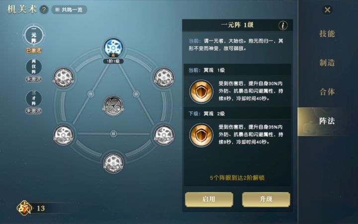 明月菌今天晚上吃了一个馍,什么馍?不懂机关阵法的折磨/(ㄒoㄒ)/~~机关巧兽,战力非凡,更是带给了少侠们无限的可能。但这机关阵法究竟为何物,竟然让厉害的(不是)明月菌惨遭翻车呢?≧ ﹏ ≦这就要提起,机关术推出的全新玩法——机关阵法啦!明月菌经过一番情报打听,终于要到了机关阵法的秘籍攻略,少侠们快来跟随明月菌一起来看看吧~机关术养成 机关阵法机关阵法是机关术系统里的一种全新玩法,共有三个阵