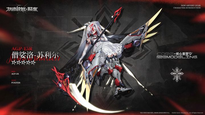 #机动战姬:聚变# #机动战姬#冠以「死亡」这一称号的净化者,被神秘感所笼罩。在净化者这个团体中,苏利尔算是特异的存在,以致于相当一部分AG误认为她并不隶属于「净化者」。就算是在执行净化任务、面对着众多傀儡时,苏利尔也能始终保持着冷静和平常心。在「净化者」中,这是一份难能可贵的能力。——核心重塑5★战姬『 -苏利尔』。即将在10月10日正式登场,型号:AGP-13r称号:僧娑洛 Rei