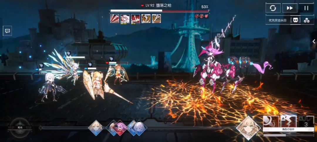 队伍要求: 罗伊斯(三星角色)五级三技能(为了眩晕百分百,你要是不升的话要凹,反正三星也不贵)且有一定状态命中,速度一定要比北斗快(不然boss吃不到眩晕会减伤) 卡罗琳(三星角色)二级三技能,只要能活过三个小怪戳戳就可以 莫里斯(四星角色),只要科技三,且速度超过130就可以,如果北斗速度太低二技能要升一升,反正莫里斯有尽量拉一下(莫里斯速度低于130,boss会先醒,没法给北斗拉条) 北斗(你