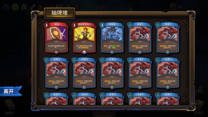 作为我第一次通关我想说,这tm什么玩意?流程还行剧情也还行,这游戏可以玩的关就这样?啥也卡也没陪好就打上boss了?这boss还随机摧毁你的卡,本来都没陪好的卡组把哦攻击牌都摧毁了???我tm打一个boss用了两个多小时???还有强烈建议制作组把阵亡英雄的卡让玩家抽不到,我打boss时候就剩一个战士抽的都是法师的卡一个打不出去差点被打死