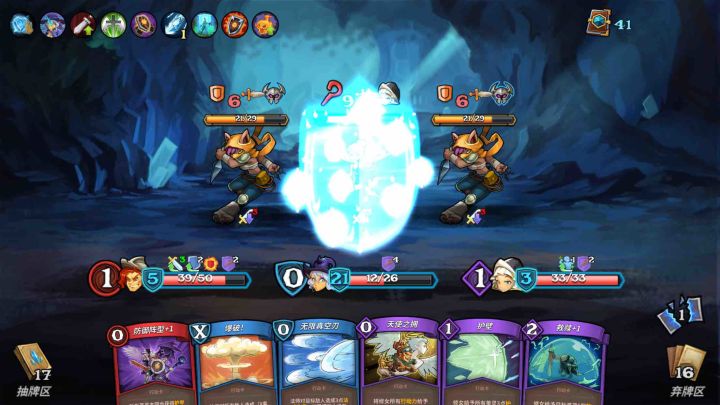 通过邪神换了的多余手牌就用深渊交易来转化成行动力,最后用守护转给战士。一般会有10点20点的行动力。'这时候你牌组的牌基本上变成消耗区的牌了,这个时候可以用