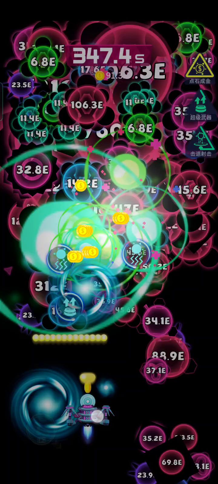 消灭病毒-1027关 威力巨大的浮游火力强化器粉碎所有病毒。