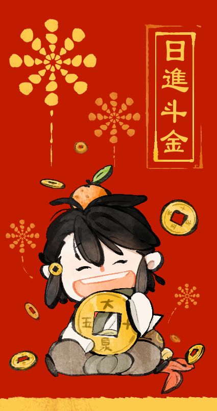 红包,在广东也称为“利是封”,哪怕只封个五块的小红包,我们都要用漂漂亮亮的利是封。所以为了迎接春节,我们精心设计了三款具有美好寓意的佳期春节2020限定款红包。希望大家在新春之际烟花爆竹砰砰响,红包财源滚滚来!~第一款:日进斗金【寓意:财源滚滚来,数钱数到手抽筋】我们的游子抱着印有“大泉五十”字样铜钱的形象小知识: “大泉五十”铸行时间虽然仅有13年,但其却是通行货币中流通时间最长、铸量最