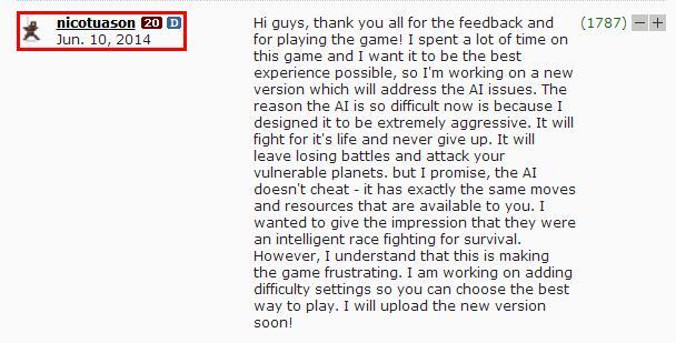 这次是我心血来潮,想要对Solarmax2(以下简称s2)的前世今生做一下总结。声明:现在讨论的是电脑版s2。首先要去看的肯定是s2的基本信息啦!上图:不过有一点很可惜:没有s2的出版时间。为了弄清楚这一点,我决定去外国网站看看。于是我发现了这些:经过一番寻找,在Kongregate上发现了游戏更新时间:然而这不可能是游戏出版时间,因为s2的作者在2014年就发表了一番评论:▼为了证