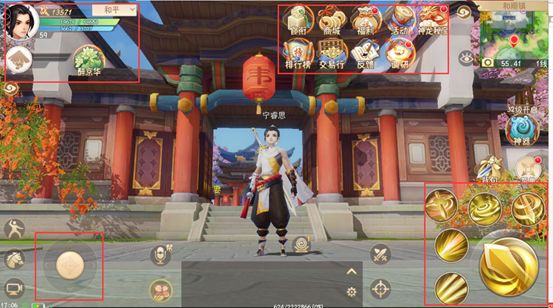 《鹿鼎记手游》是根据金庸老先生的小说改编而来,融入了时下流行的撩妹元素及养成玩法打造而成,在游戏中充满各式各样的小游戏和小技巧,方便各位老司机顺利飙车,坐稳了幼儿园的摩托车出发咯。 在《鹿鼎记手游》里共计分为四个功能区域模块,左上的人物信息区,右上的功能按钮区,左下的方向盘(啊呸,是移动控制区),以及右下的油门区(不不不,战斗区域)。 人物信息区里可以看到大家操作的老司机的生命值、法力值以及宠物的