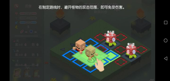 在元素之渊里,是否懂得玩法规则懂得骚走位,那结果待遇简直天差地别!就拿小嘉嘉我来说,第一次玩最高关卡记录是,,1关!搞清楚玩法后,那简直是突飞猛进,一口气过好几关那简直不费劲。话不多说,下面讲下常用的玩法规则是咋样的。1. 清楚自身、怪物的攻击范围及怪物啥时候发动攻击的时机:在预演移动的过程中角色对应的蓝色方块就是攻击范围( 每种元素的攻击范围不同),预演移动过程中红色的方块的提示方块是代表临近
