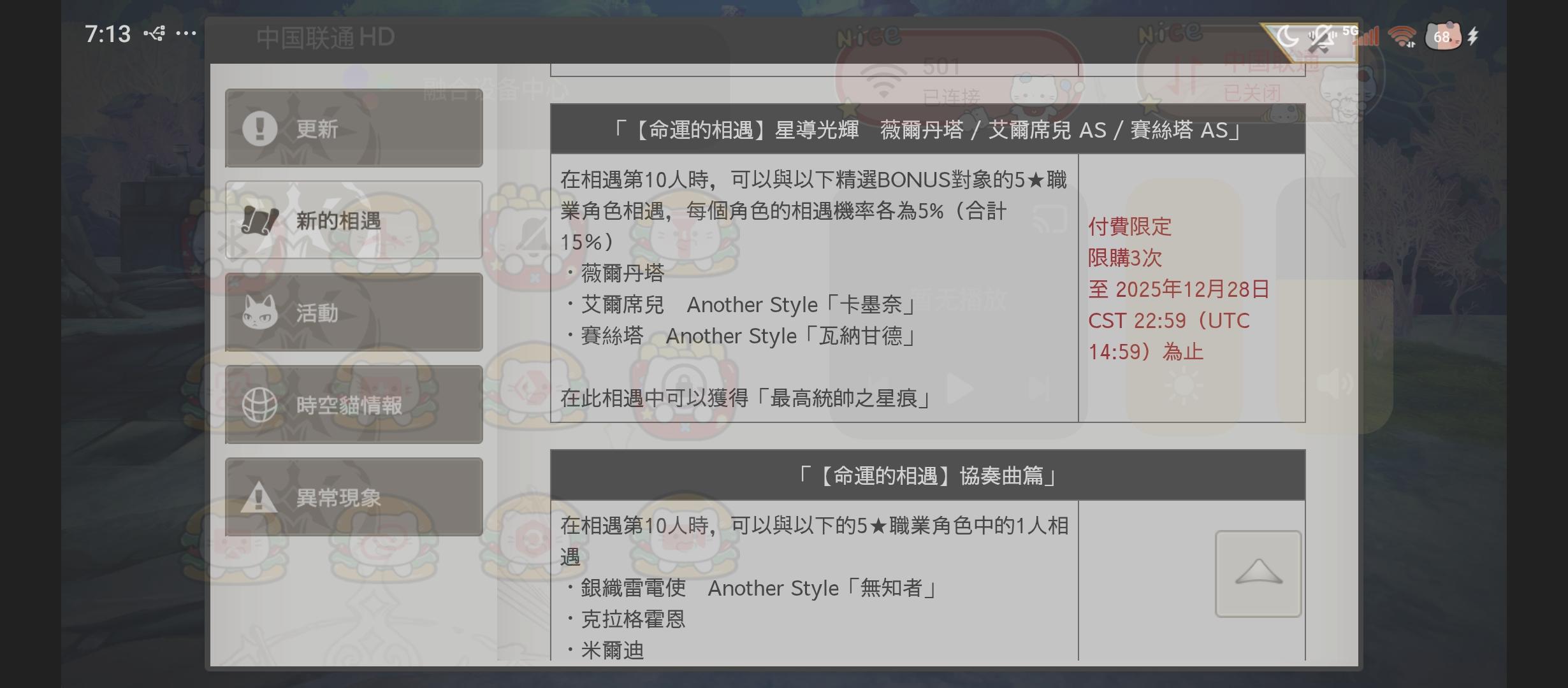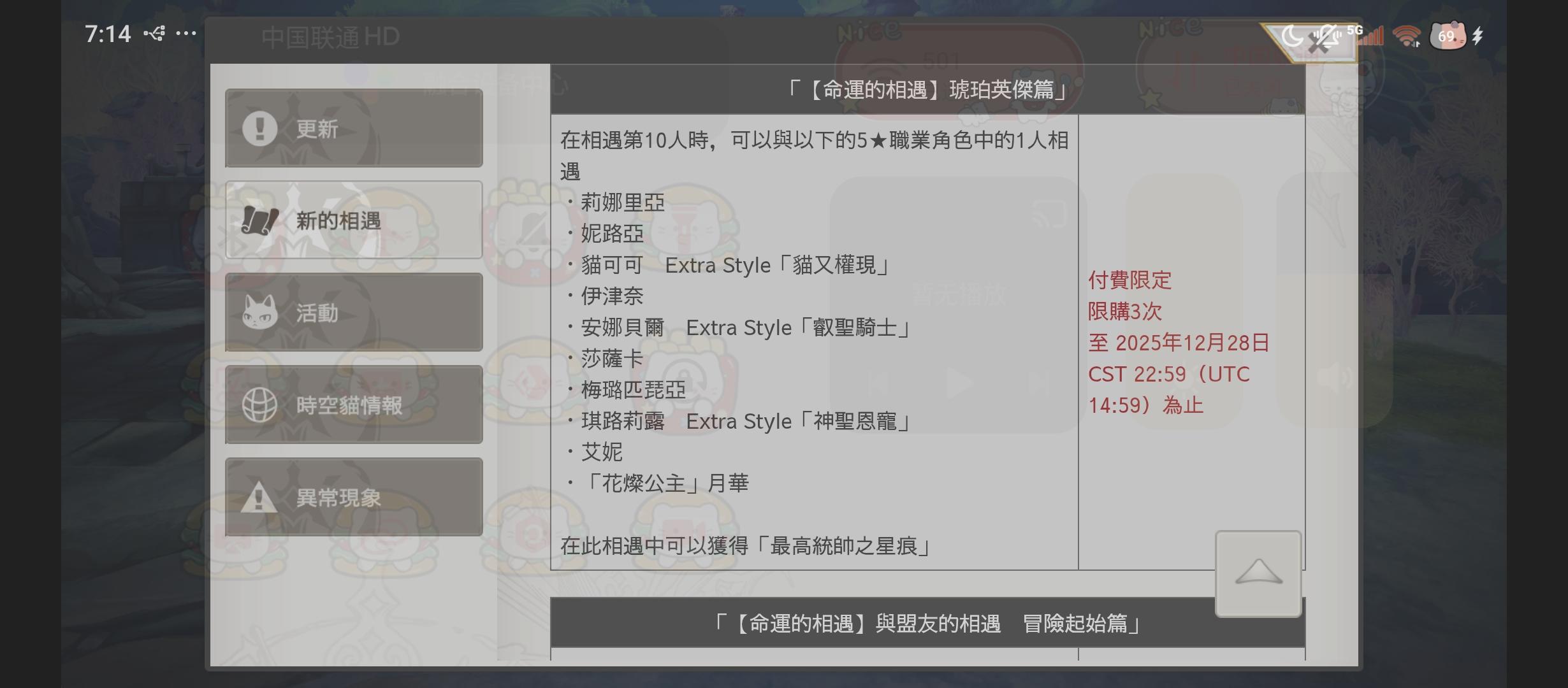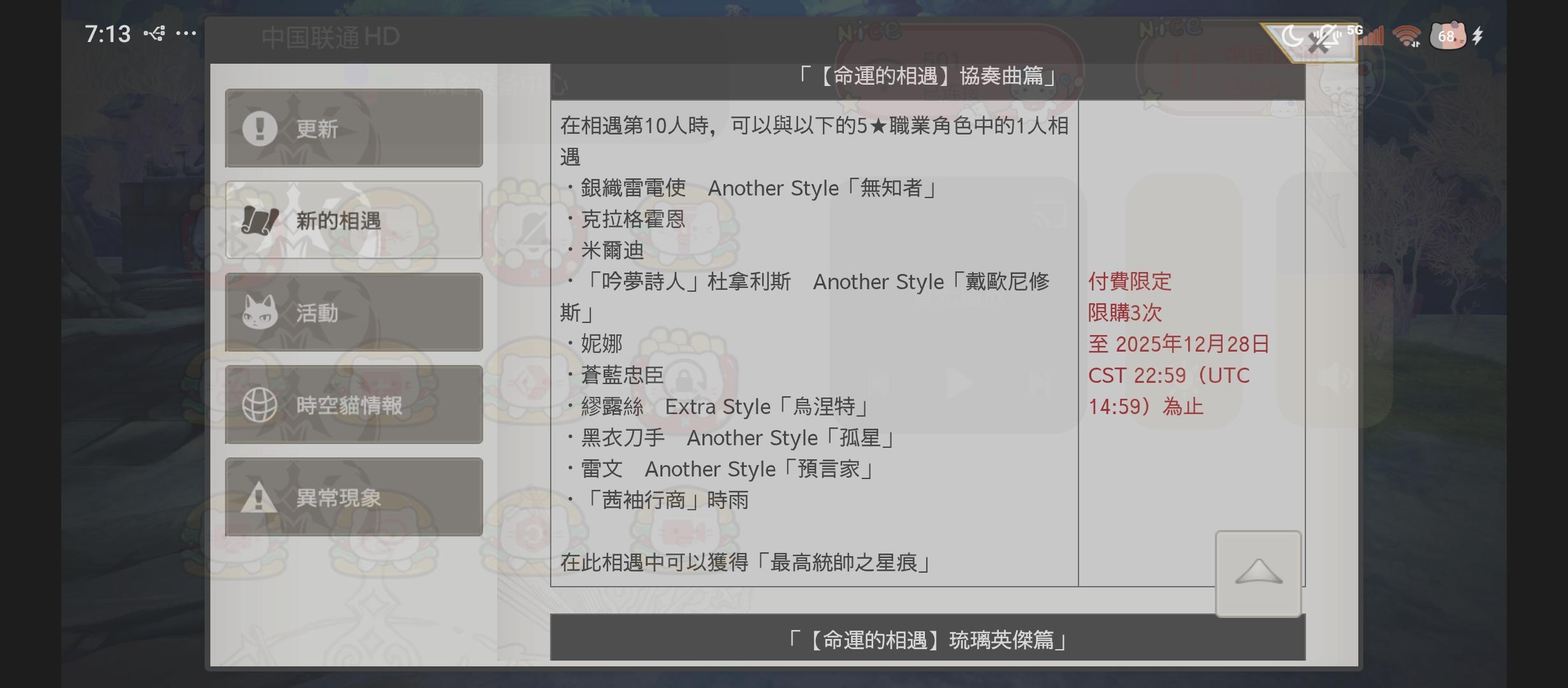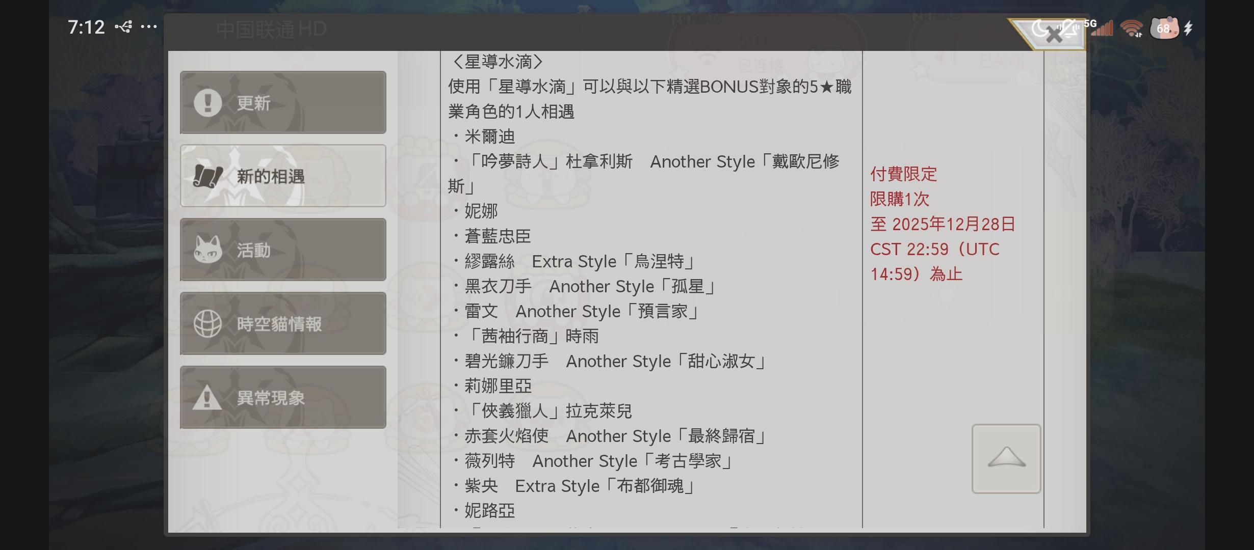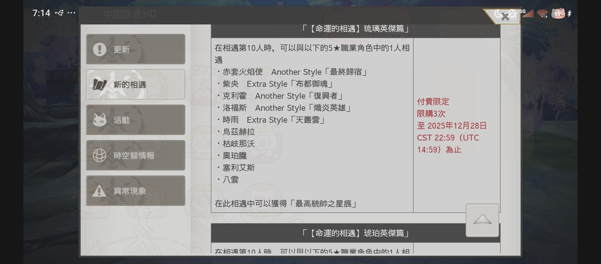 抽了幾個重複的五星,明明五星自選還有19個老角色沒有,就是不肯多給幾個New。導致我五星自選根本不敢選,琪路莉露、尤因、由奈都沒有,五星自選只能選一個沒法決定選誰乾脆不選,主線都通關了五星自選還留著沒選吶。抽卡前途渺茫,主線通關了以後就沒什麼鑽石拿了,其他雜七雜八的劇情就差協奏COMPLEX DFEAM應該也拿不了多少鑽石。一百隻討伐還剩19個也拿不了多少鑽石。釣魚漁具都買光了應該也拿不了多少鑽