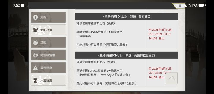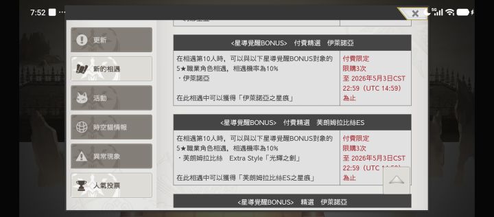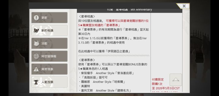 这次的周年池子既然是付费的,没有免费,好可惜。泰坦妹新形态Es,新角色伊莱诺亚,另外我随缘抽,石头也不是很多。