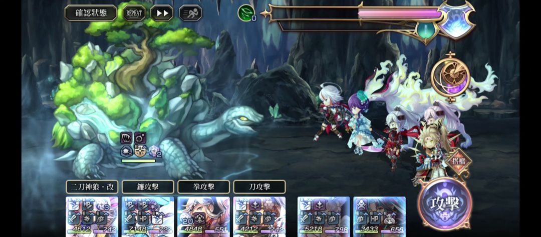 狼姐新时代顶配风队一次就过去了,换作是别的队伍的话基本死翘翘,我试了两个队伍,发现绑属水队能靠打条打死boss两条命,可第三条就撑不住了,首先boss第一条命靠打条基本解决一条命,第二条风腿直接消耗全部珠子发动冰晶也能秒死一条,第三条由于没有af条直接打等于送死,boss有反击机制,你打他一下它回你一下而且伤害还特别高,就算是有es杜拿利丝加护盾也还是一样一击必杀,直接一下打死,几千的血量在它面前