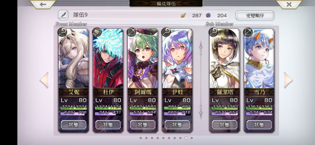 刚开始打的时候还有点难,先是用狼姐二刀打死两条,艾妮一直瓦夜,然后最后一条命等摩可充能,让es琪路转为救世主直接开大(心之剑)一招秒杀,我的7616装有穿痛灵晶,并且附带厄运连连让弱点伤害倍增,倒下三个,最后一个开大秒杀,算是勉强通过了吧