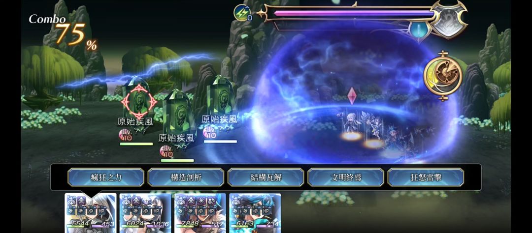 直接玩纯雷输出爆炸,等会雷斧外史结束了,我会换上雷斧,没有护盾真的很脆,很容易被别人打死,只能速战速决,不能拖太久,要不没mp要不直接死一个,换上as拉迪亚斯虽然能好上一点,可是那样打条也不能打出999,999,999伤害,换掉一个输出真的直接下降, 伤害减少,那样只能靠保命了,有点不甘,明明是t0级队伍伤害爆炸,可自保能力却这么弱。 这个试炼本来也有火弱的,可是我没组那个队伍,毕竟那些角色,技能