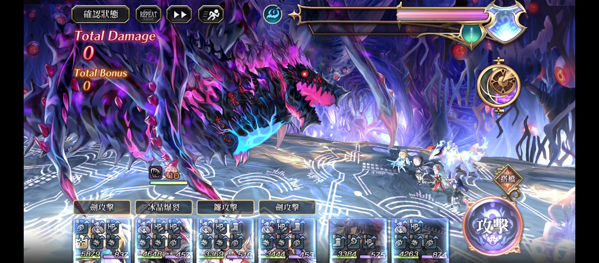 這個BOSS每回合都有障壁,傷害是0,迫不得已只能用異時層西雅爾貫穿障壁隊伍打