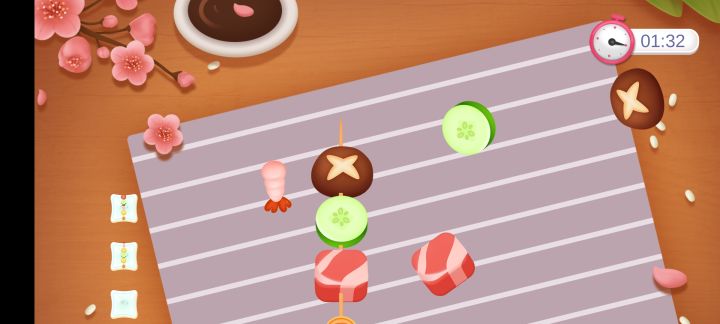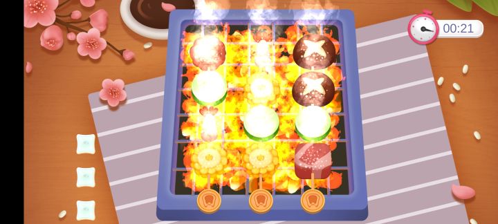 好像回到了小时候在网页玩做饭小游戏的时候,点触的反馈很不错!可以到处乱点也可以到处划拉,完成的时候还会有顾客的好吃反馈,感觉会很开心w