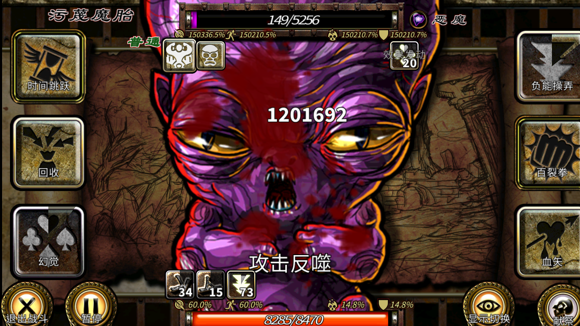 百裂拳刷魔晶千万不要到250以上,一旦达到250个魔晶必然触发贪婪魔王出现,如图,根本打不过,切记,切记,拿低攻击高频率刷百来个差不多了