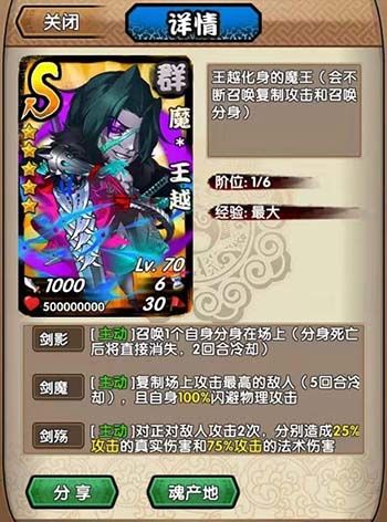 声明: 本攻略并不是歧视平民玩家,而是提供更多的发展方向,高v为了更快发展避免充值拿许多短期无用的资源,低v平民可以取一个适合自己的目标为之奋斗,希望大家都能找到各自的游戏乐趣以及游戏目标一起玩儿下去!祝大家游戏愉快!(本攻略有问题的地方欢迎各位玩家指出讨!) --来自玩家芝华士下面就是打魔王的另外一个绝对核心了--------输出:这一块我们搭配魔王来分析,会给到一部分的阵容核心,充值拿卡拿