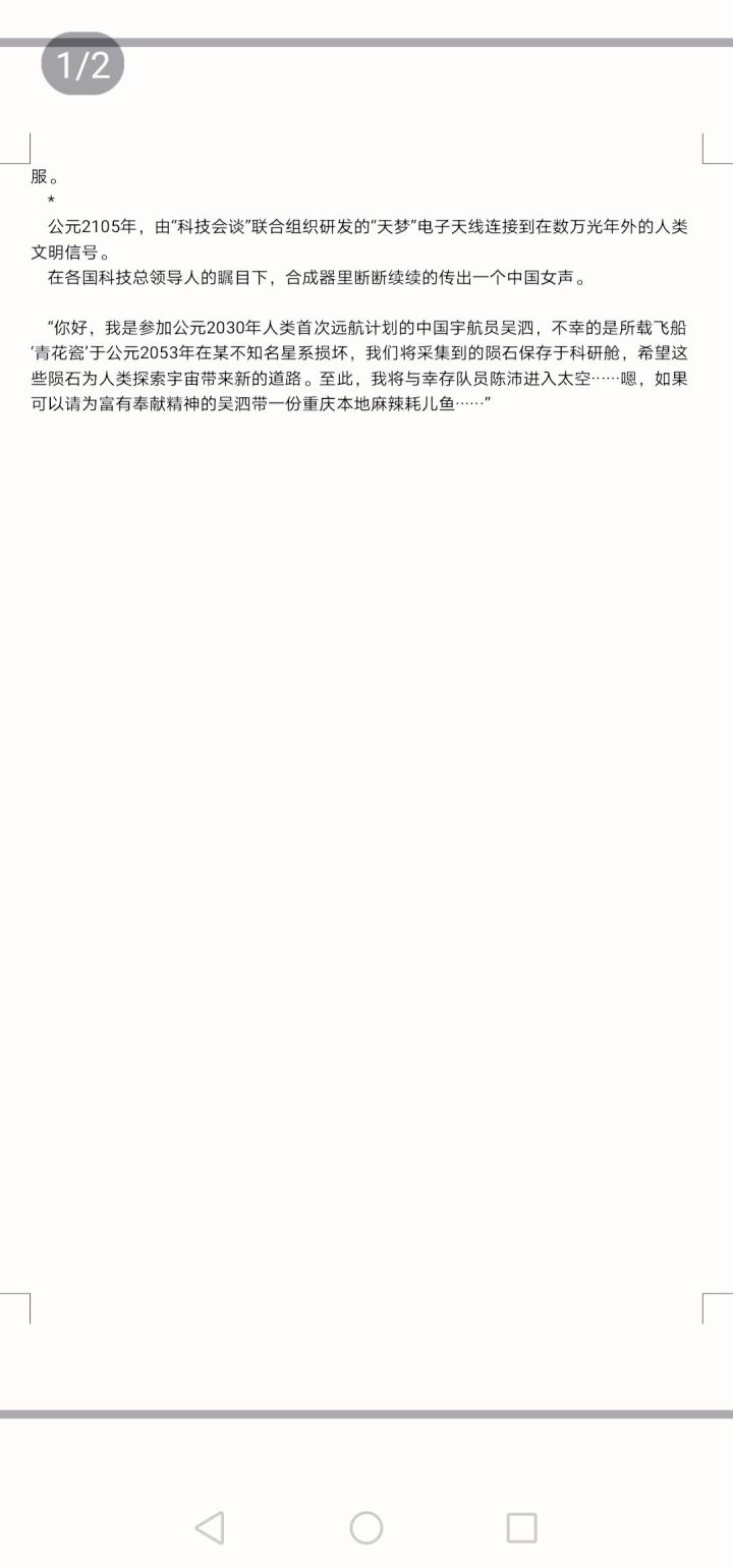 “现在我要死啦,我还想着把康格星的小虫子放在我的胸口,让它吃掉我的心脏,可在此之前它能不能先吃完我的脂肪?想到那个鹅卵石甲烷泡泡,我就想像现在这样,缩起来,如同妈妈抱着我,拥抱的感觉和那个泡泡一样,星球上独一无二的奇迹。你总说我在家留不住。我不后悔离开,可自从我踏上旅途后,我与你的时空就越来越远。你会抬头看完一眼,想我吗?我好想你啊,妈妈,这次返航我不回来了,但我的爱会顺着丝线游回地球。”实在不