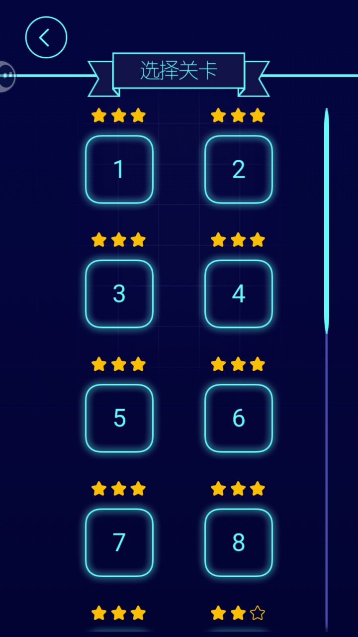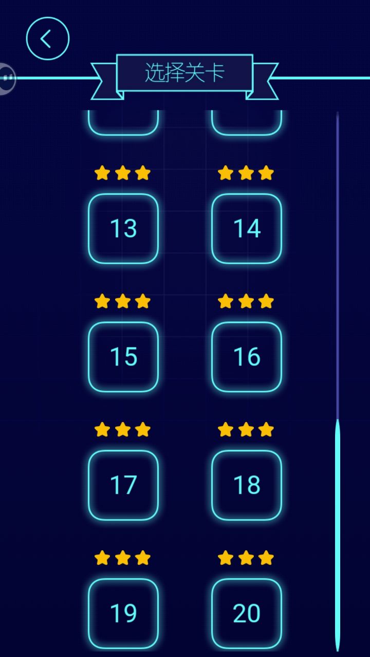 火柴人不断跳跃在彩色的图形之间,在踩完所有方块(点亮颜色)之前收集星星