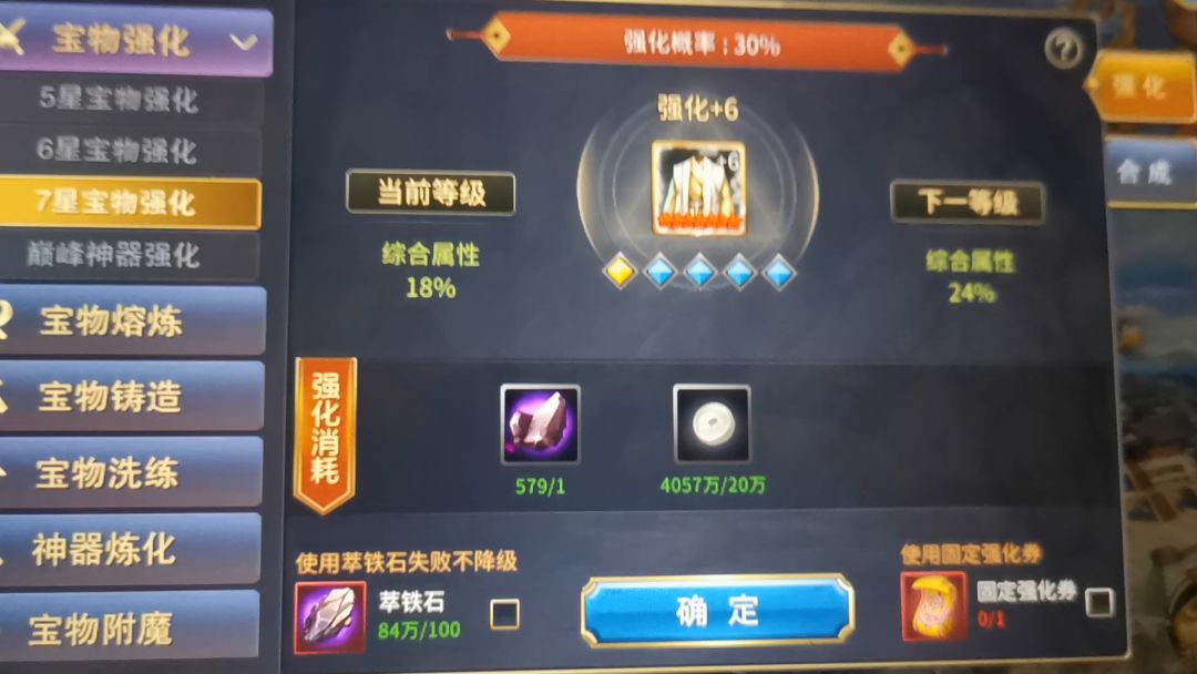 视频攻略,小技巧,可以省一点萃铁石,强化6升强化7时可以不用萃铁石,失败了也不降星 十胜十败 焦糖布丁