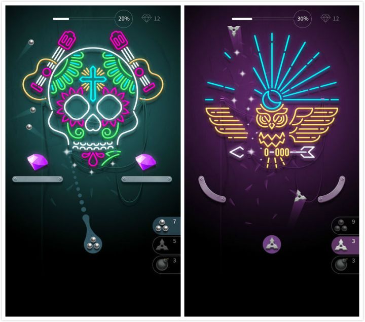 《Hit the Light》是一款别具特色的弹珠游戏,你要破坏的不是砖块,而是展现为不同物体的霓虹灯管,手里的弹珠也分很多类型,例如炸弹、手枪、飞镖。由于灯管构造各不相同,你必须合理规划使用策略,比如用炸弹炸毁复杂结构,用飞镖穿透密集部位,用手枪进行精准射击,只有层层算计,才能不断前行。游戏可在和下载